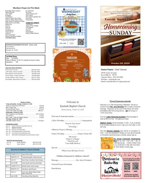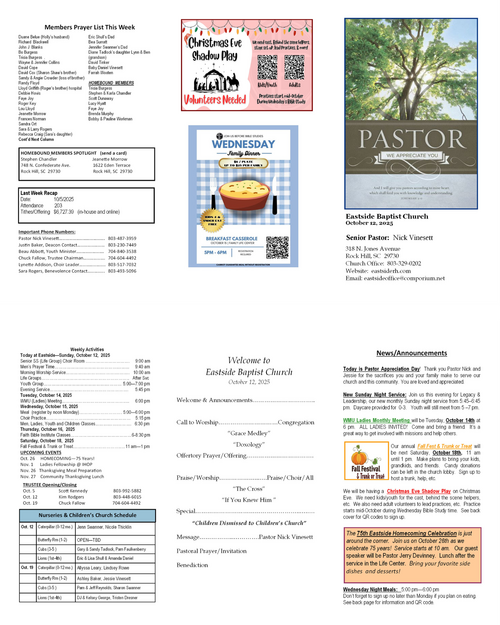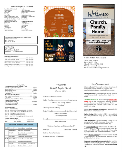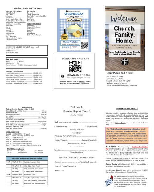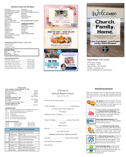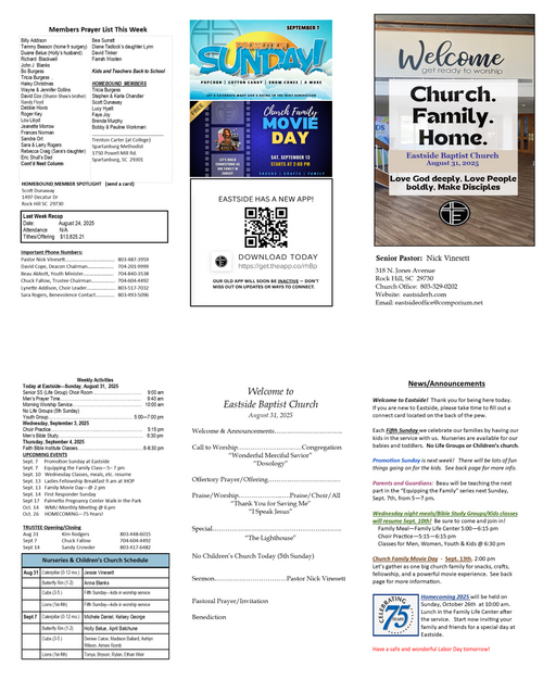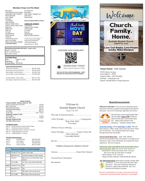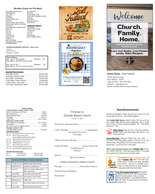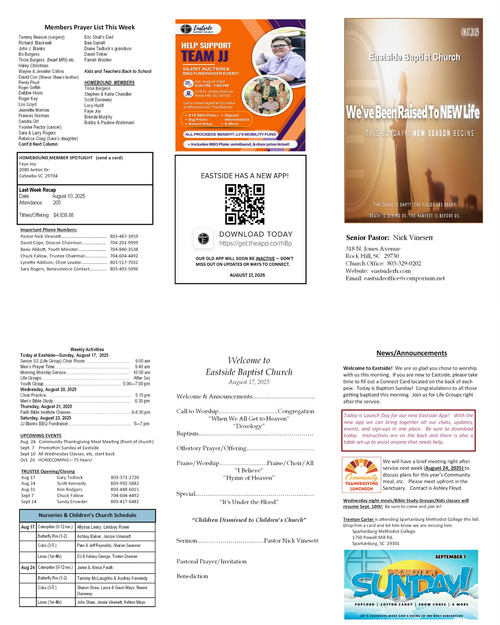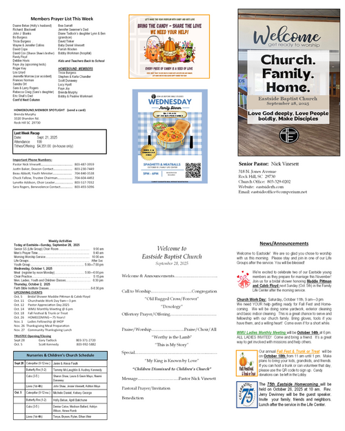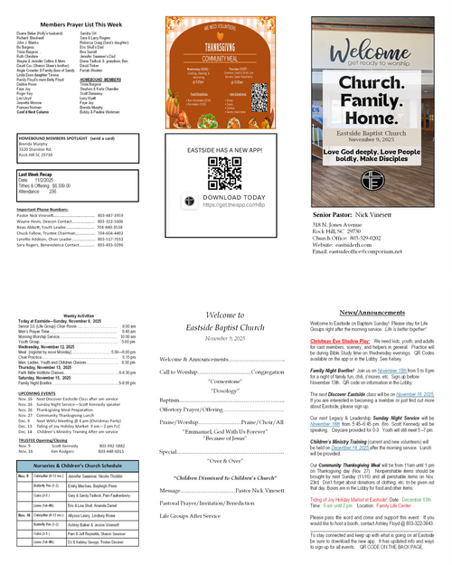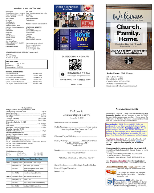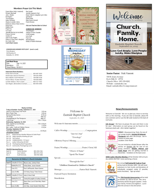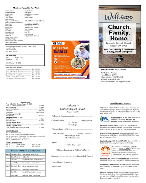 Our weekly bulletin is designed to keep you connected and equipped for the mission God has called us to. Here you’ll find current announcements, upcoming events, and opportunities to live sent in your community. Whether you missed Sunday or just want a reminder, this is your place to stay up-to-date and engaged each week.