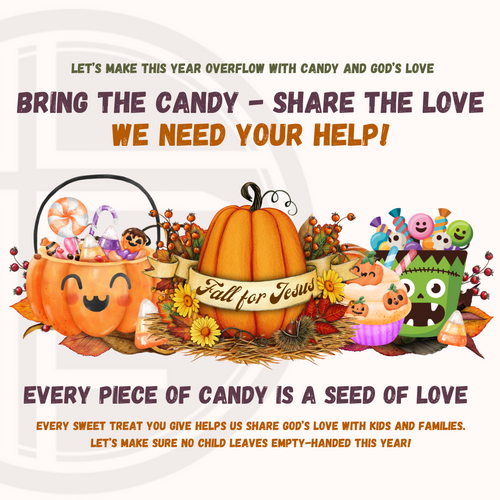 Help us make the night sweet! Bring or drop off candy donations—your generosity helps us reach more kids and families in our community.