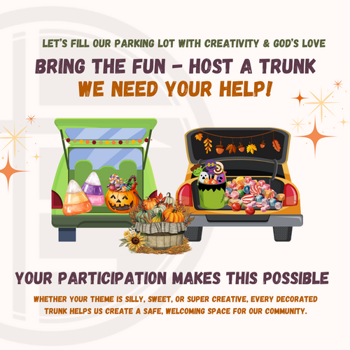 Want to be part of the fun? Sign up to host a trunk, decorate your car, and share treats with families—it’s a great way to serve and connect.